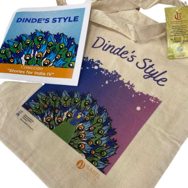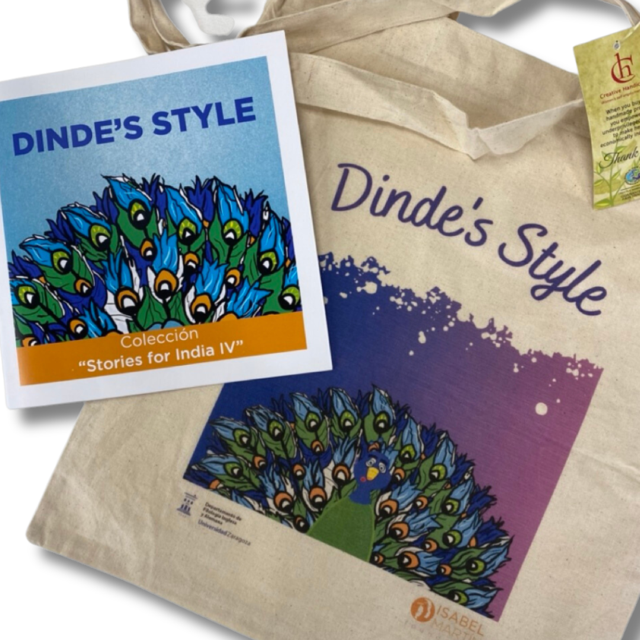 Pack cuento solidario Dinde’s style acompañado de una práctica tote bag o bolsa de la compra con diseño especial del propio cuento. Estos cuentos han sido realizados por los/as estudiantes de la mención en inglés de los Grados de Educación Infantil y Educación Primaria de la Universidad de Zaragoza. Son solidarios porque todo lo recaudado con su venta va íntegramente a financiar la guardería bilingüe de Tanakla, India.